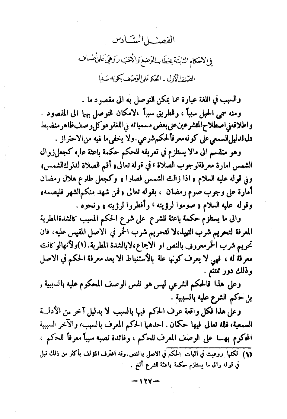 [الصِّنْفُ الْأَوَّلُ الْحُكْمُ عَلَى الْوَصْفِ بِكَوْنِهِ سَبَبًا]