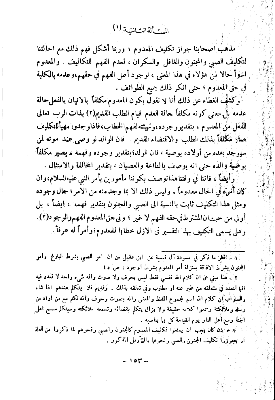 (١) انْظُرْ مَا ذُكِرَ فِي مُسْوَّدَةِ آلِ تَيْمِيَّةَ عَنِ ابْنِ عَقِيلٍ مِنْ أَنَّ أَمْرَ الصَّبِيِّ بِشَرْطِ الْبُلُوغِ وَأَمْرَ الْمَجْنُونِ بِشَرْطِ الْإِفَاقَةِ بِمَنْزِلَةِ أَمْرِ الْمَعْدُومِ بِشَرْطِ الْوُجُودِ: ص ٤٥.