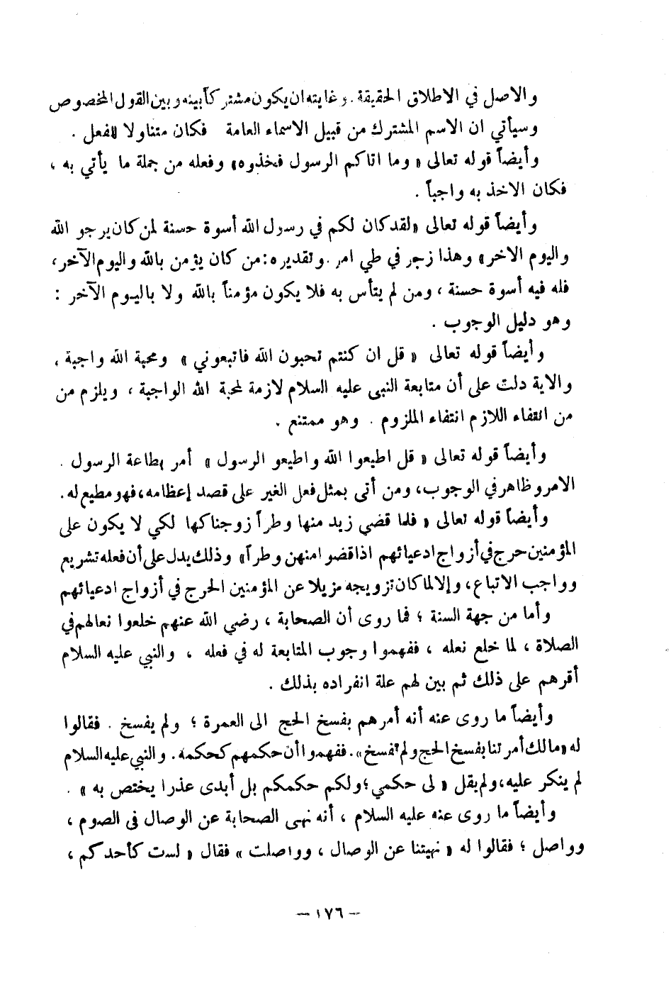 وَأَيْضًا قَوْلُهُ تَعَالَى: {قُلْ إِنْ كُنْتُمْ تُحِبُّونَ اللَّهَ فَاتَّبِعُونِي} ، وَمَحَبَّةُ اللَّهِ وَاجِبَةٌ وَالْآيَةُ دَلَّتْ عَلَى أَنَّ مُتَابَعَةَ النَّبِيِّ عَلَيْهِ السَّلَامُ لَازِمَةٌ لِمَحَبَّةِ اللَّهِ الْوَاجِبَةِ، وَيَلْزَمُ مِنَ انْتِفَاءِ اللَّازِمِ انْتِفَاءُ الْمَلْزُومِ، وَهُوَ مُمْتَنِعٌ.