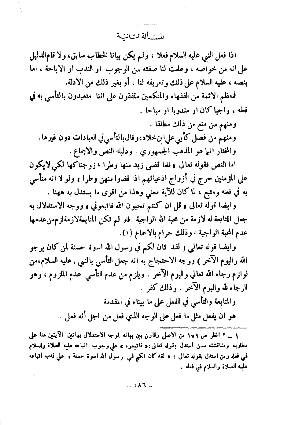[الْمَسْأَلَةُ الثَّانِيَةُ النَّبِيُّ عَلَيْهِ السَّلَامُ مُتَأَسًّى بِهِ فِي فِعْلِهِ وَمُتَّبَعٌ]