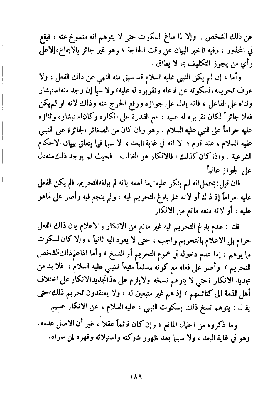 وَإِلَّا لَمَا سَاغَ السُّكُوتَ حَتَّى لَا يُتَوَهَّمَ أَنَّهُ مَنْسُوخٌ عَنْهُ فَيَقَعَ فِي الْمَحْذُورِ، وَفِيهِ تَأْخِيرُ الْبَيَانِ عَنْ وَقْتِ الْحَاجَةِ، وَهُوَ غَيْرُ جَائِزٍ بِالْإِجْمَاعِ إِلَّا عَلَى رَأْيِ مَنْ يُجَوِّزُ التَّكْلِيفَ بِمَا لَا يُطَاقُ.