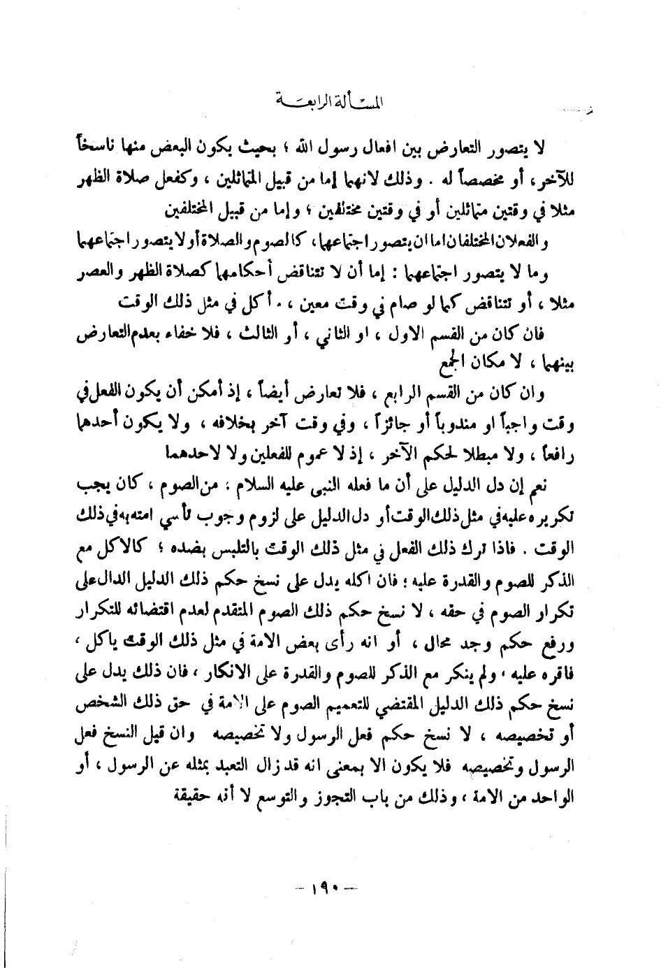 [الْمَسْأَلَةُ الرَّابِعَةُ عدم التَّعَارُضُ بَيْنَ أَفْعَالِ رَسُولِ اللَّهِ]