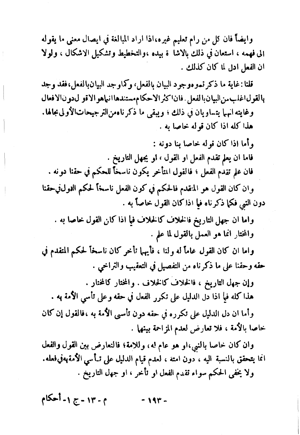 فَإِنَّ أَكْثَرَ الْأَحْكَامِ مُسْتَنَدُهَا إِنَّمَا هُوَ الْأَقْوَالُ دُونَ الْأَفْعَالِ، وَغَايَتُهُ أَنَّهُمَا يَتَسَاوَيَانِ فِي ذَلِكَ وَيَبْقَى مَا ذَكَرْنَاهُ مِنَ التَّرْجِيحَاتِ الْأَوْلَى بِحَالِهَا، هَذَا كُلُّهُ إِذَا كَانَ قَوْلُهُ خَاصًّا بِهِ، وَأَمَّا إِنْ كَانَ قَوْلُهُ خَاصًّا بِنَا دُونَهُ: فَإِمَّا أَنْ يُعْلَمَ تَقَدُّمُ الْفِعْلِ، أَوِ الْقَوْلِ أَوْ يُجْهَلَ التَّارِيخُ.