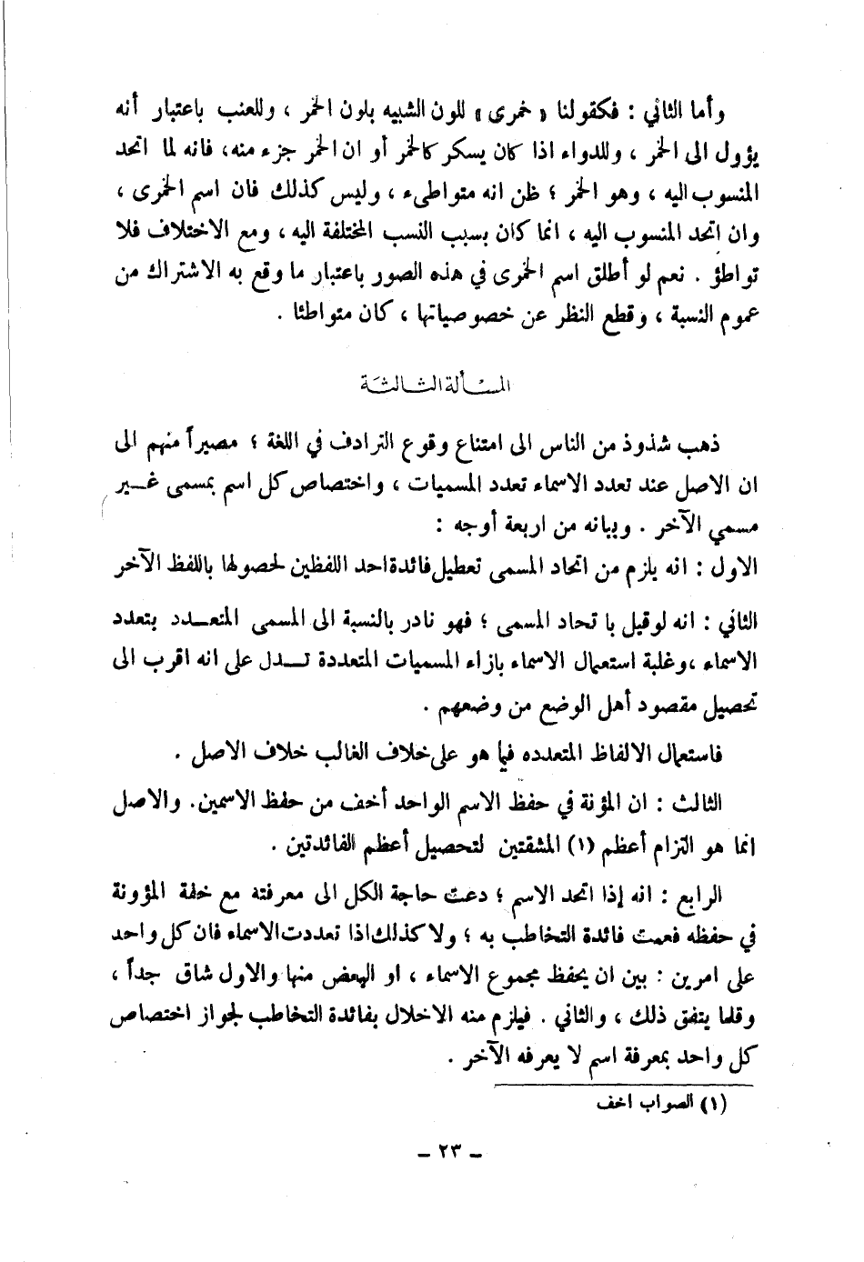 [الْمَسْأَلَةُ الثَّالِثَةُ التَّرَادُفِ فِي اللُّغَةِ]