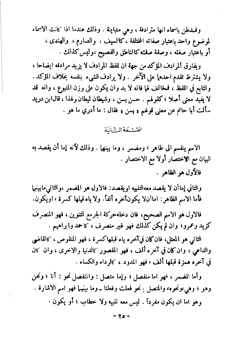 [الْقِسْمَةُ الثَّانِيَةُ الِاسْمُ يَنْقَسِمُ إِلَى ظَاهِرٍ وَمُضْمَرٍ وَمَا بَيْنَهُمَا]