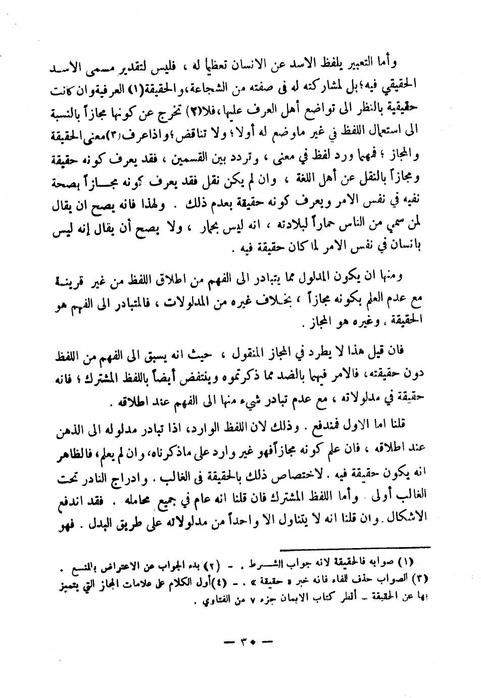 (٤) أَوَّلُ الْكَلَامِ عَلَى عَلَامَاتِ الْمَجَازِ الَّتِي يَتَمَيَّزُ بِهَا عَنِ الْحَقِيقَةِ - انْظُرْ كِتَابَ " الْإِيمَانِ " جُزْءُ ٧ مِنَ الْفَتَاوَى.