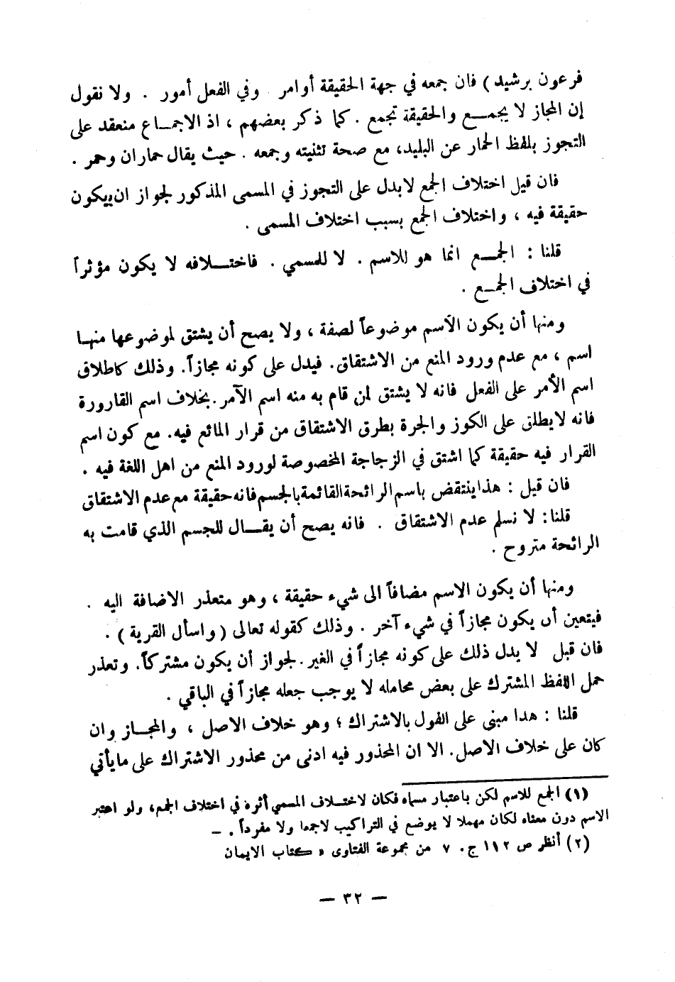 (٢) انْظُرْ ص١٢٢ ج ٧ مِنْ مَجْمُوعَةِ الْفَتَاوَى " كِتَابِ الْإِيمَانِ ".