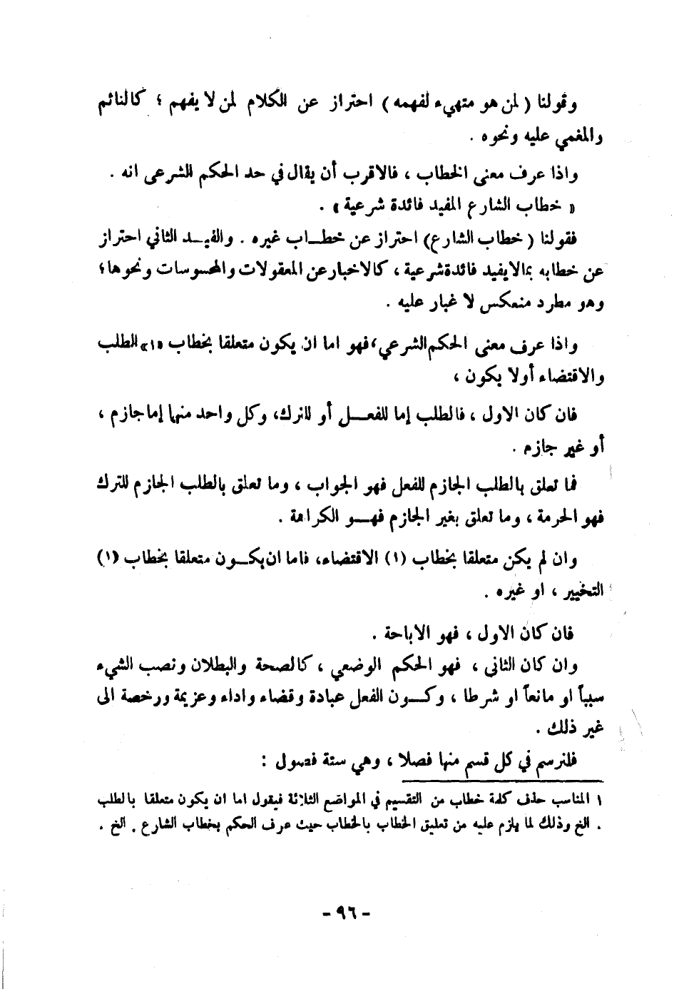 (٢) الْمُنَاسِبُ حَذْفُ كَلِمَةِ " خِطَابٍ " مِنَ التَّقْسِيمِ فِي الْمَوَاضِعِ الثَّلَاثَةِ، فَيَقُولُ: إِمَّا أَنْ يَكُونَ مُتَعَلِّقًا بِالطَّلَبِ. . . إِلَخْ، وَذَلِكَ لِمَا يَلْزَمُ عَلَيْهِ مِنْ تَعْلِيقِ الْخِطَابِ بِالْخِطَابِ ; حَيْثُ عَرَّفَ الْحُكْمَ بِخِطَابِ الشَّارِعِ. إِلَخْ