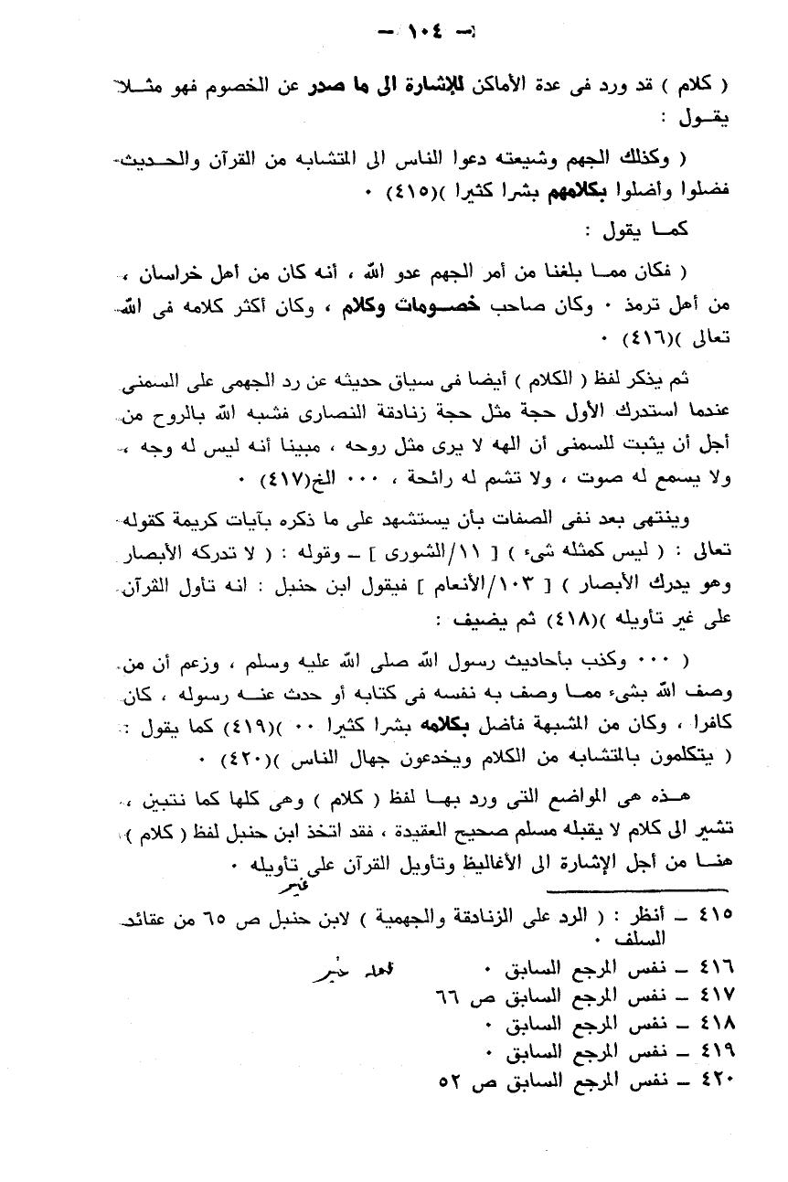 قيل لهم: الحديد جسم موات، وليس يجب إذا كان القرآن منزلا أن يكون جسما مواتا، فكذلك لا يجب إذا كان القرآن منزلا أن يكون مخلوقا، وإن كان الحديد مخلوقا.