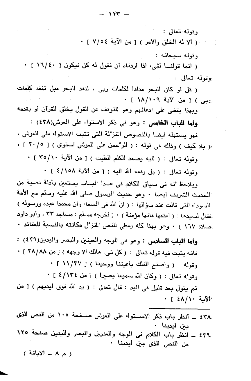 : (يخافون ربهم من فوقهم) من الآية (50 /16) ، وقال تعالى: (تعرج الملائكة والروح إليه) من الآية (4 /70) ، وقال تعالى: (ثم استوى إلى السماء وهي دخان) من الآية (11 /41) ، وقال تعالى: (ثم استوى على العرش الرحمن فاسأل به خبيرا) من الآية (59 /25) ، وقال تعالى: (ثم استوى على العرش مالكم من ولي ولا شفيع) (4 /32) ، فكل ذلك يدل على أنه تعالى في السماء مستو على عرشه، والسماء بإجماع الناس ليست الأرض، فدل على أنه تعالى منفرد بوحدانيته، مستو على عرشه استواء منزها عن الحلول والاتحاد.