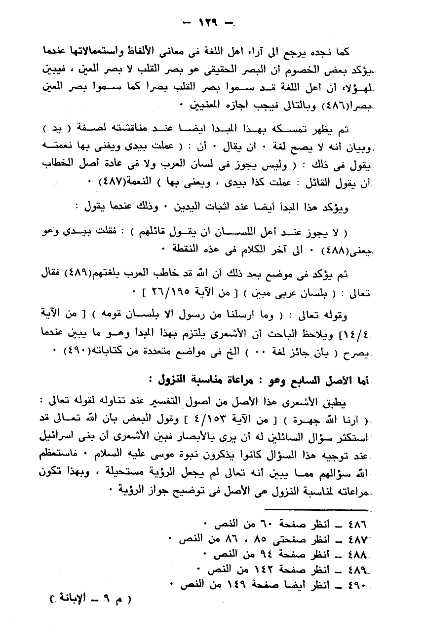 : (وما أرسلنا من رسول إلا بلسان قومه) من الآية (4 /14) ، وقال تعالى: (لسان الذي يلحدون إليه أعجمي وهذا لسان عربي مبين) من الآية (103 /16) ، وقال تعالى: (إنا جعلناه قرآنا عربيا) من الآية (3 /4) ، وقال تعالى: (أفلا يتدبرون القرآن ولو كان من عند غير الله) من الآية (82 /4) ، ولو كان القرآن بلسان غير العرب لما أمكن أن نتدبره، ولا أن نعرف معانيه إذا سمعناه، فلما كان من لا يحسن لسان العرب لا يحسنه، وإنما يعرفه العرب إذا سمعوه على أنهم إنما علموه؛ لأنه بلسانهم نزل، وليس في لسانهم ما ادعوه.