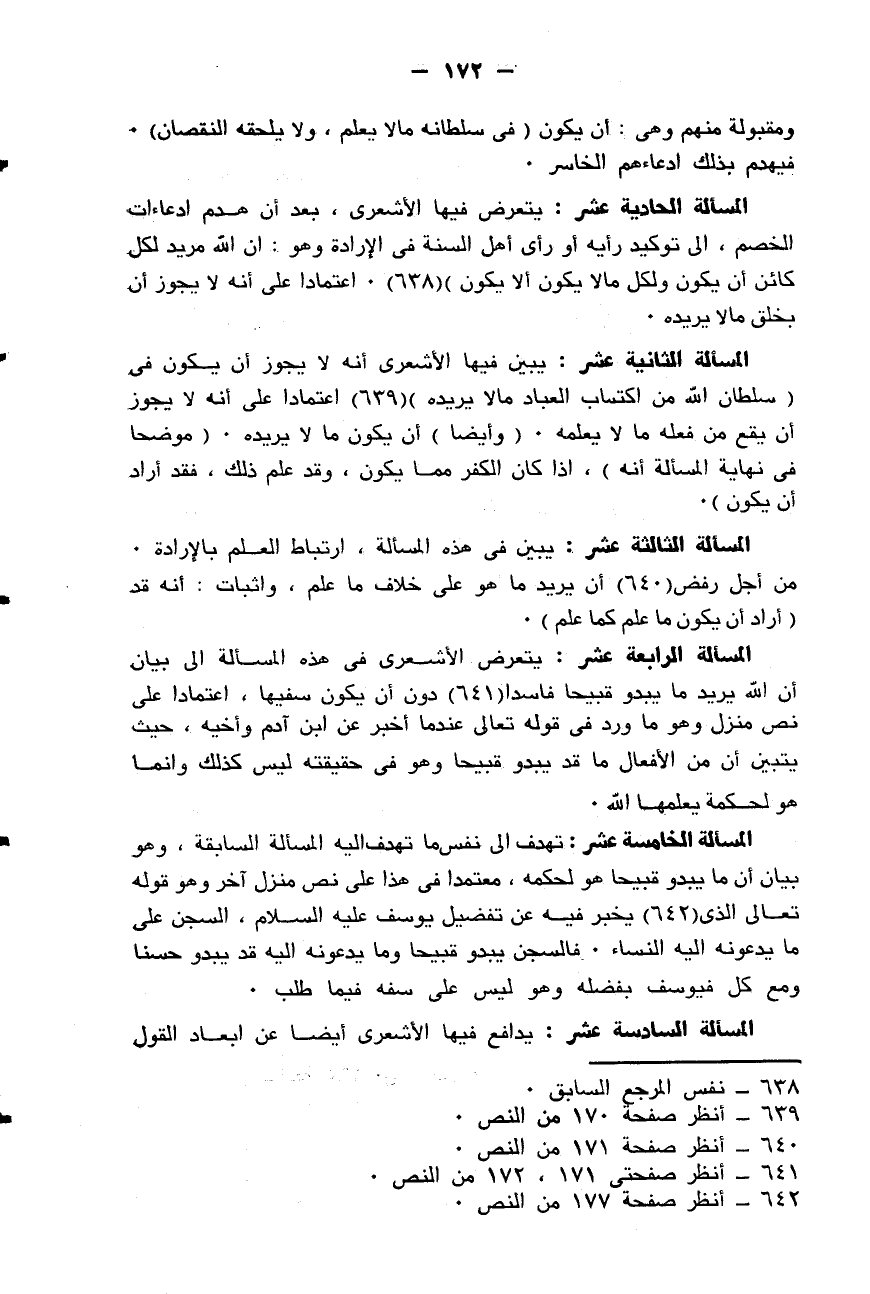 قيل لهم: ولم قلتم ذلك، أو ليس قد أخبر الله تعالى عن ابن آدم أنه قال لأخيه: (لئن بسطت إلي يدك لتقتلني ما أنا بباسط يدي إليك لأقتلك إني أخاف الله رب العالمين إني أريد أن تبوء بإثمي وإثمك فتكون من أصحاب النار وذلك جزاء الظالمين) من الآية (28 - 29 /5) ، فأراد أن لا يقتل أخاه لئلا يعذب، وأن يقتله أخوه حتى يبوء بإثم قتله له، وسائر آثامه التي كانت عليه فيكون من أصحاب النار، فأراد قتل أخيه الذي هو سفه، ولم يكن بذلك سفيها، فلم زعمتم أن الله تعالى إذا أراد سفه العباد وجب أن ينسب ذلك إليه؟