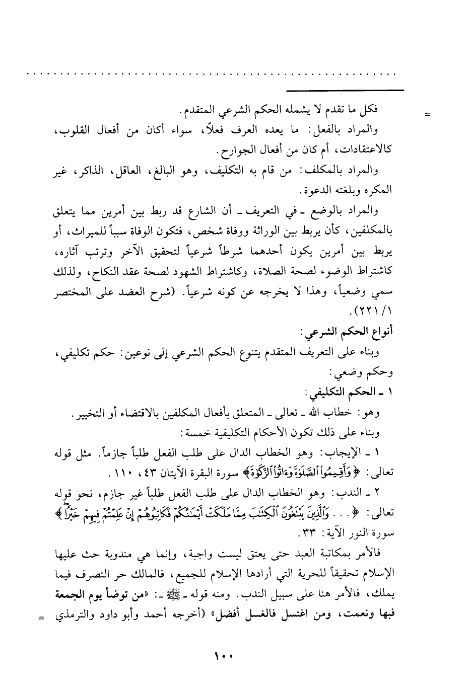 2- الندب: وهو الخطاب الدال على طلب الفعل طلبًا غير جازم، نحو قوله تعالى: { ... وَالَّذِينَ يَبْتَغُونَ الْكِتَابَ مِمَّا مَلَكَتْ أَيْمَانُكُمْ فَكَاتِبُوهُمْ إِنْ عَلِمْتُمْ فِيهِمْ خَيْرًا} [سورة النور الآية: 33] .