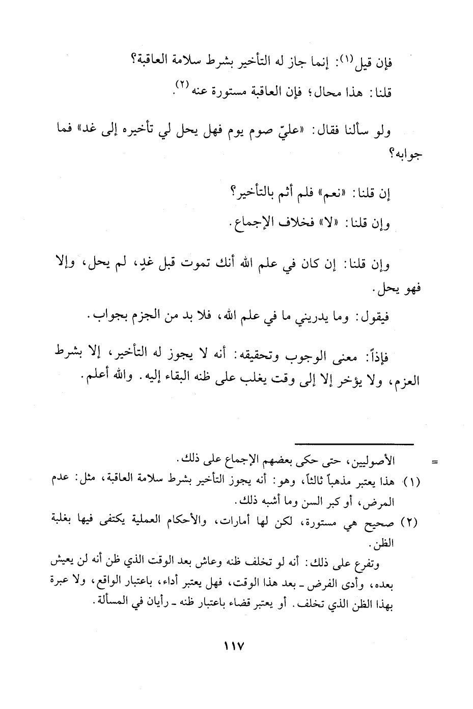 1 هذا يعتبر مذهبًا ثالثًا، وهو: أنه يجوز التأخير بشرط سلامة العاقبة، مثل: عدم المرض، أو كبر السن وما أشبه ذلك.