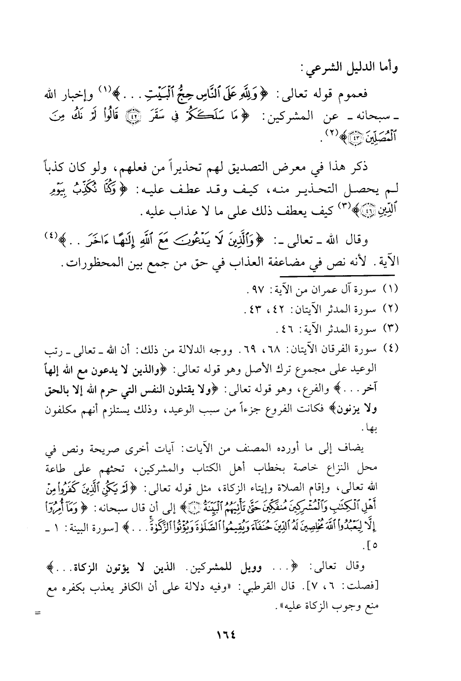 وقال تعالى: {وَوَيْلٌ لِلْمُشْرِكِينَ، الَّذِينَ لا يُؤْتُونَ الزَّكَاة} [فصلت: 6، 7] قال القرطبي: "وفيه دلالة على أن الكافر يعذب بكفره مع منع وجوب الزكاة عليه". =