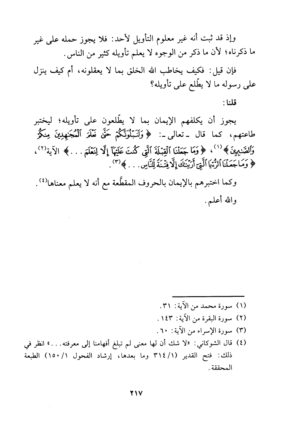 وكما اختبرهم بالإيمان بالحروف المقطعة مع أنه لا يعلم معناها4.