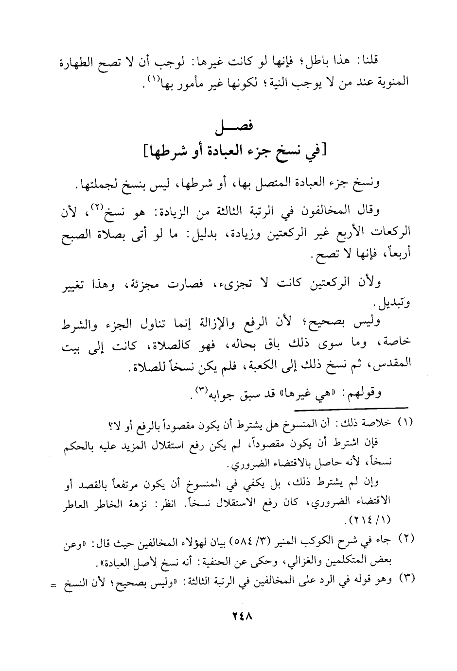 2 وهو قوله في الرد على المخالفين في الرتبة الثالثة: "وليس بصحيح؛ لأن النسخ =