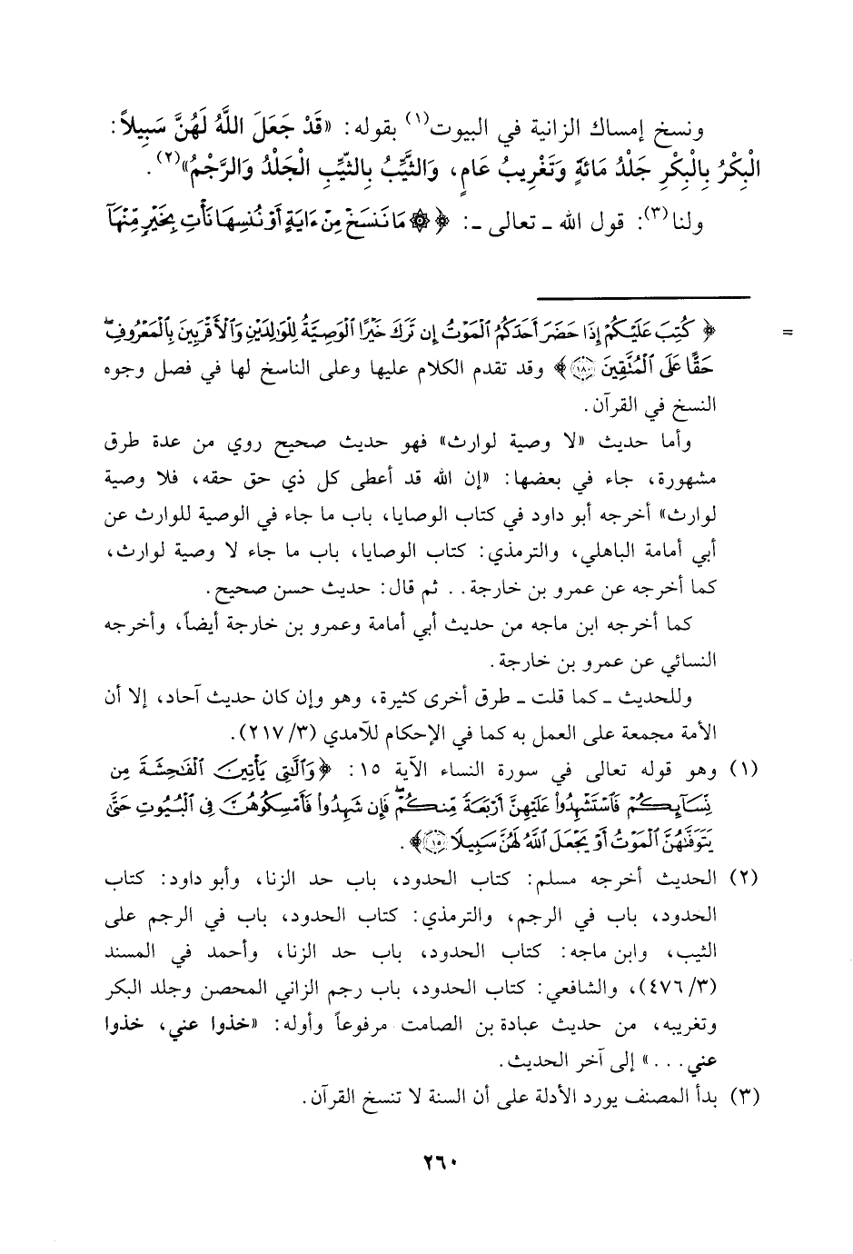 3 بدأ المصنف يورد الأدلة على أن السنة لا تنسخ القرآن.