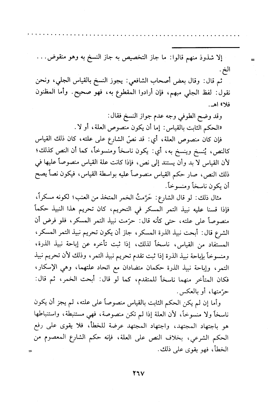 وأما إن لم يكن الحكم الثابت بالقياس منصوصًا على علته، لم يجز أن يكون ناسخًا ولا منسوخًا، لأن العلة إذا لم تكن منصوصة، فهي مستنبطة، واستنباطها هو باجتهاد المجتهد، واجتهاد المجتهد عرضة للخطأ، فلا يقوى على رفع الحكم الشرعي، بخلاف النص على العلة، فإنه حكم الشارع المعصوم من الخطأ، فهو يقوى على ذلك. =