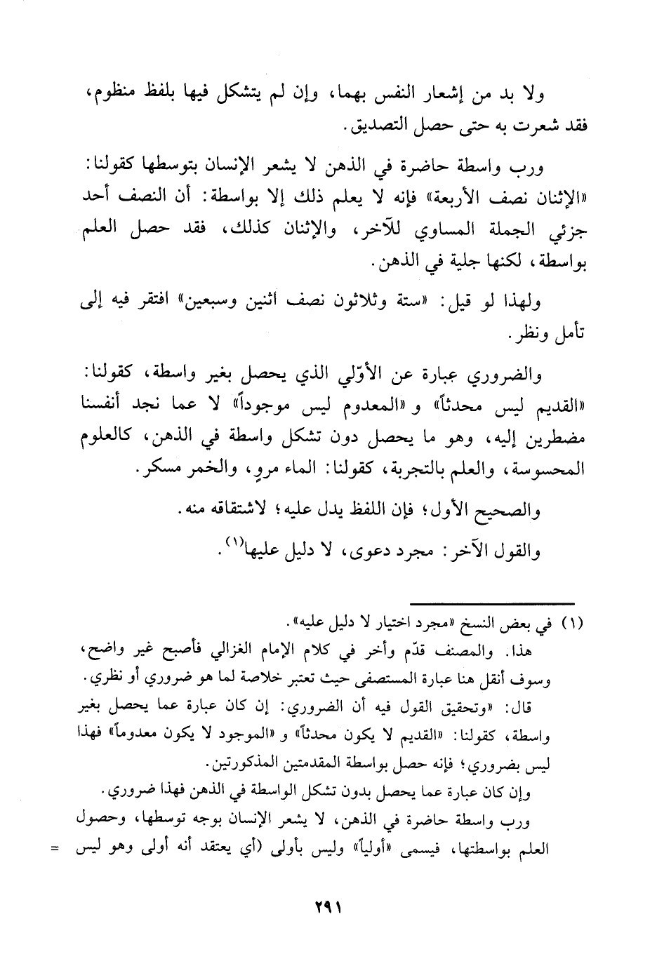 هذا. والمصنف قدم وأخر في كلام الإمام الغزالي فأصبح غير واضح، وسوف أنقل هنا عبارة المستصفى حيث تعتبر خلاصة لما هو ضروري أو نظري.