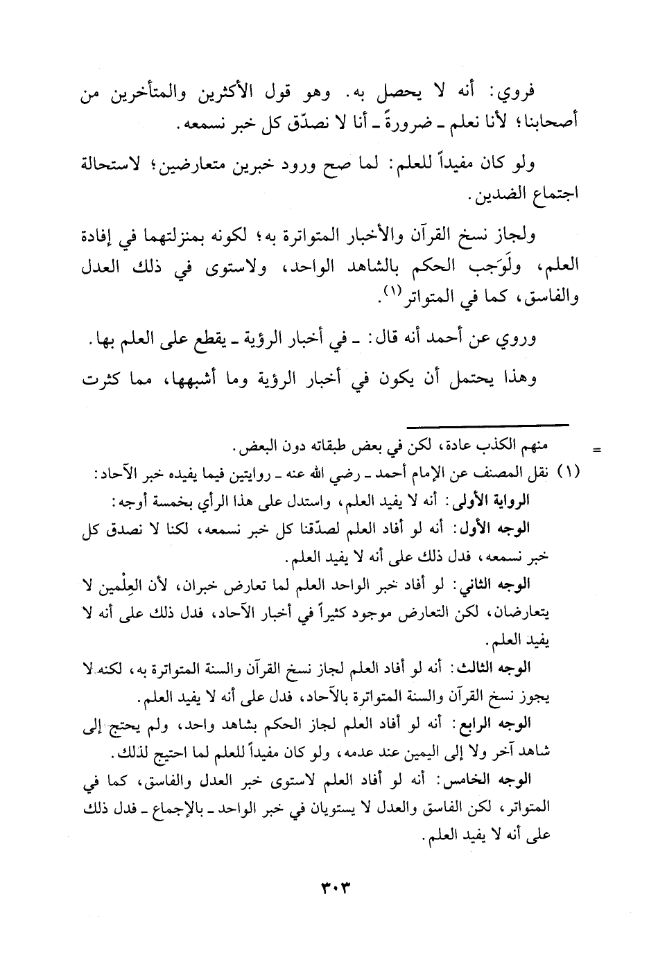 1 نقل المصنف عن الإمام أحمد -رضي الله عنه- روايتين فيما يفيده خبر الآحاد: