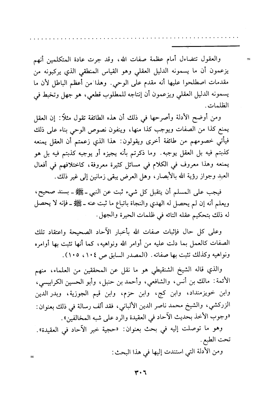 والعقول تتضاءل أمام عظمة صفات الله، وقد جرت عادة المتكلمين أنهم يزعمون أن ما يسمونه الدليل العقلي وهو القياس المنطقي الذي يركبونه من مقدمات اصطلحوا عليها أنه مقدم على الوحي. وهذا من أعظم الباطل لأن ما يسمونه الدليل العقلي ويزعمون أن إنتاجه للمطلوب قطعي، هو جهل وتخبط في الظلمات.