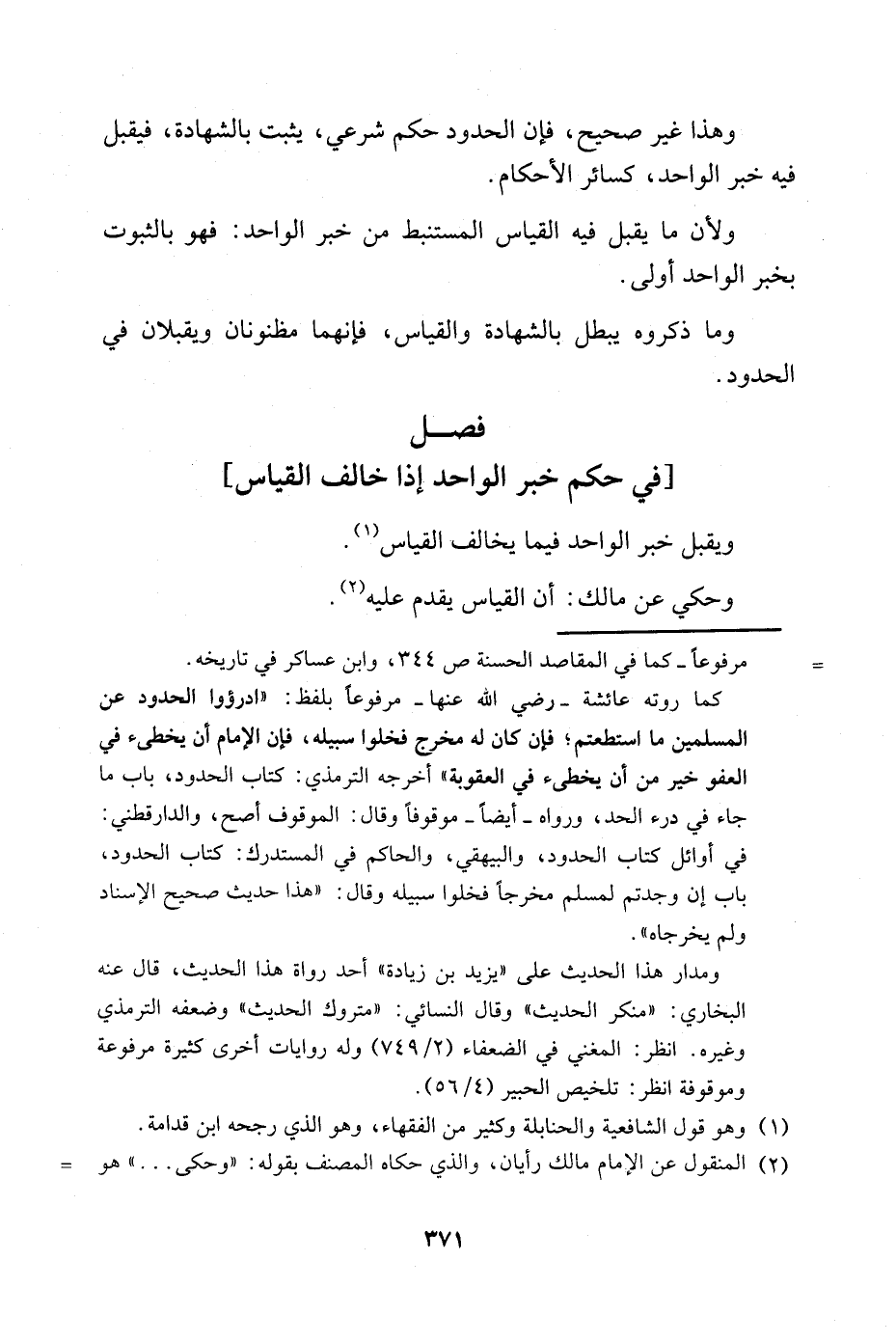 وهذا غير صحيح، فإن الحدود حكم شرعي، يثبت بالشهادة، فيقبل فيه خبر الواحد، كسائر الأحكام.