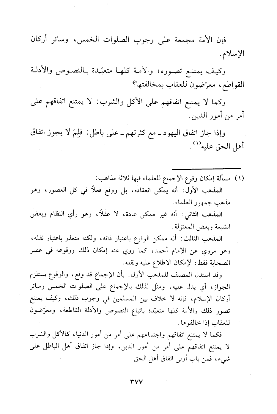 1 مسألة إمكان وقوع الإجماع للعلماء فيها ثلاثة مذاهب: