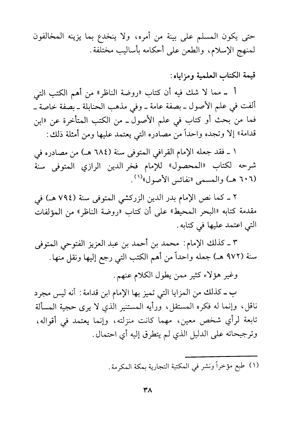 2- كما نص الإمام بدر الدين الزركشي المتوفى سنة "794هـ" في مقدمة كتابه "البحر المحيط" على أن كتاب "روضة الناظر" من المؤلفات التي اعتمد عليها في كتابه.