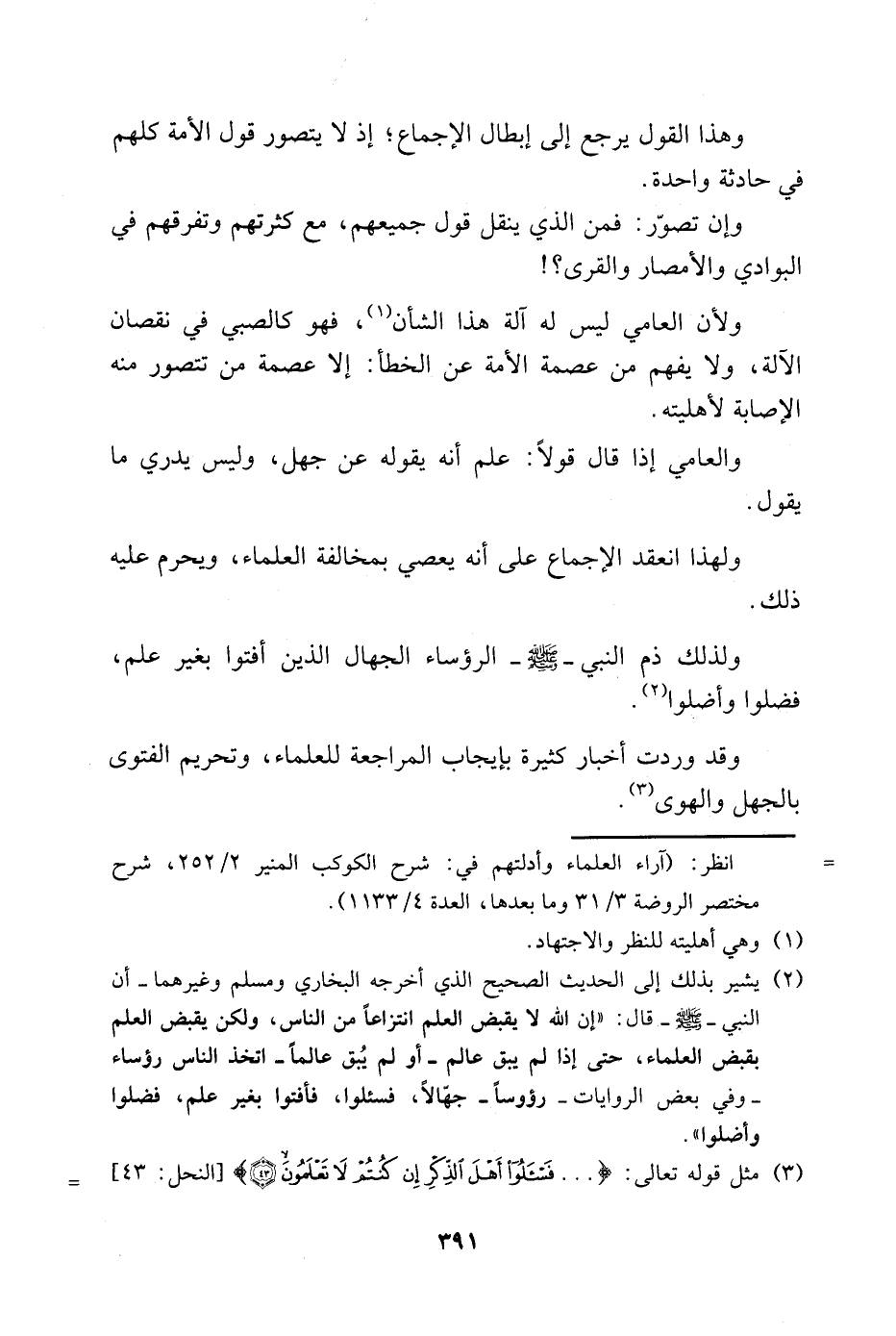 ولذلك ذم النبي -صلى الله عليه وسلم- الرؤساء الجهال الذين أفتوا بغير علم، فضلوا وأضلوا2.