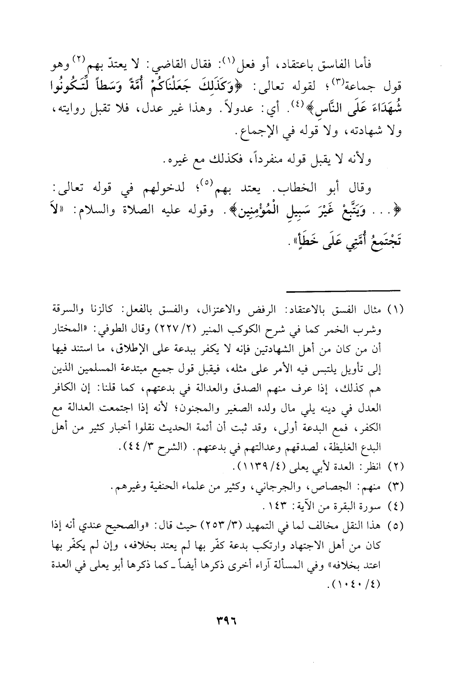 5 هذا النقل مخالف لما في التمهيد "3/ 253" حيث قال: "والصحيح عندي أنه إذا كان من أهل الاجتهاد وارتكب بدعة كفّر بها لم يعتد بخلافه، وإن لم يكفّر بها اعتد بخلافه" وفي المسألة آراء أخرى ذكرها أيضًا، كما ذكرها أبو يعلى في العدة "4/ 1040".
