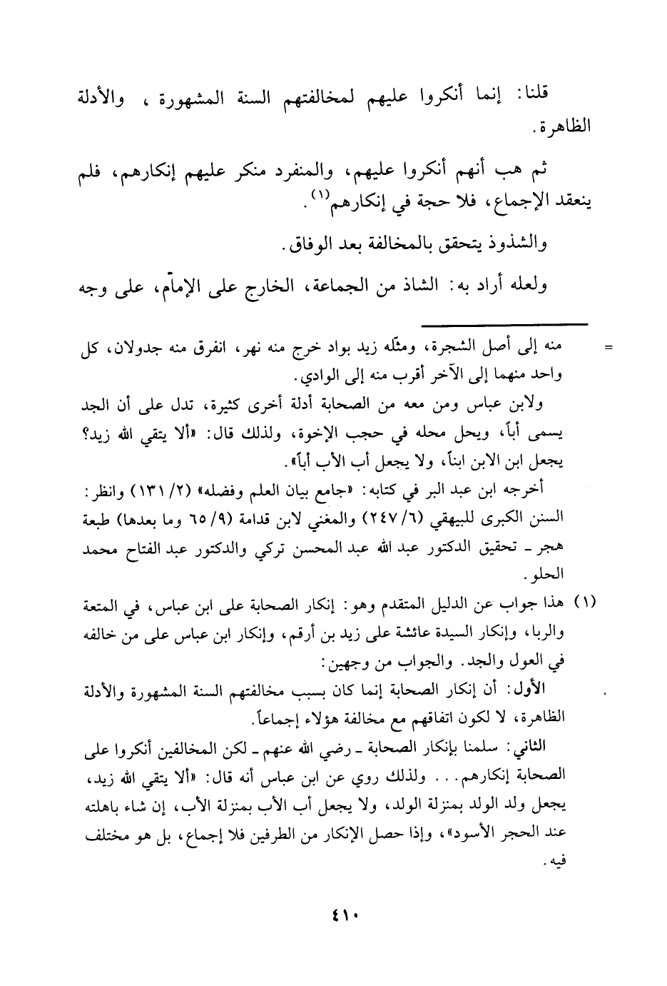 1 هذا جواب عن الدليل المتقدم وهو: إنكار الصحابة على ابن عباس، في المتعة والربا، وإنكار السيدة عائشة على زيد بن أرقم، وإنكار ابن عباس على من خالفه في العول والجد. والجواب من وجهين: