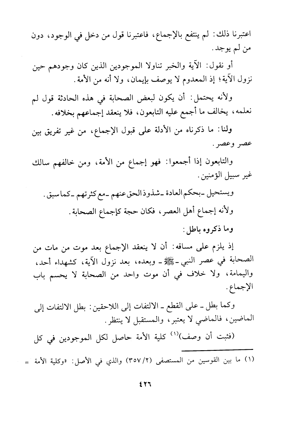 1 ما بين القوسين من المستصفى "2/ 357" والذي في الأصل: "وكلية الأمة =