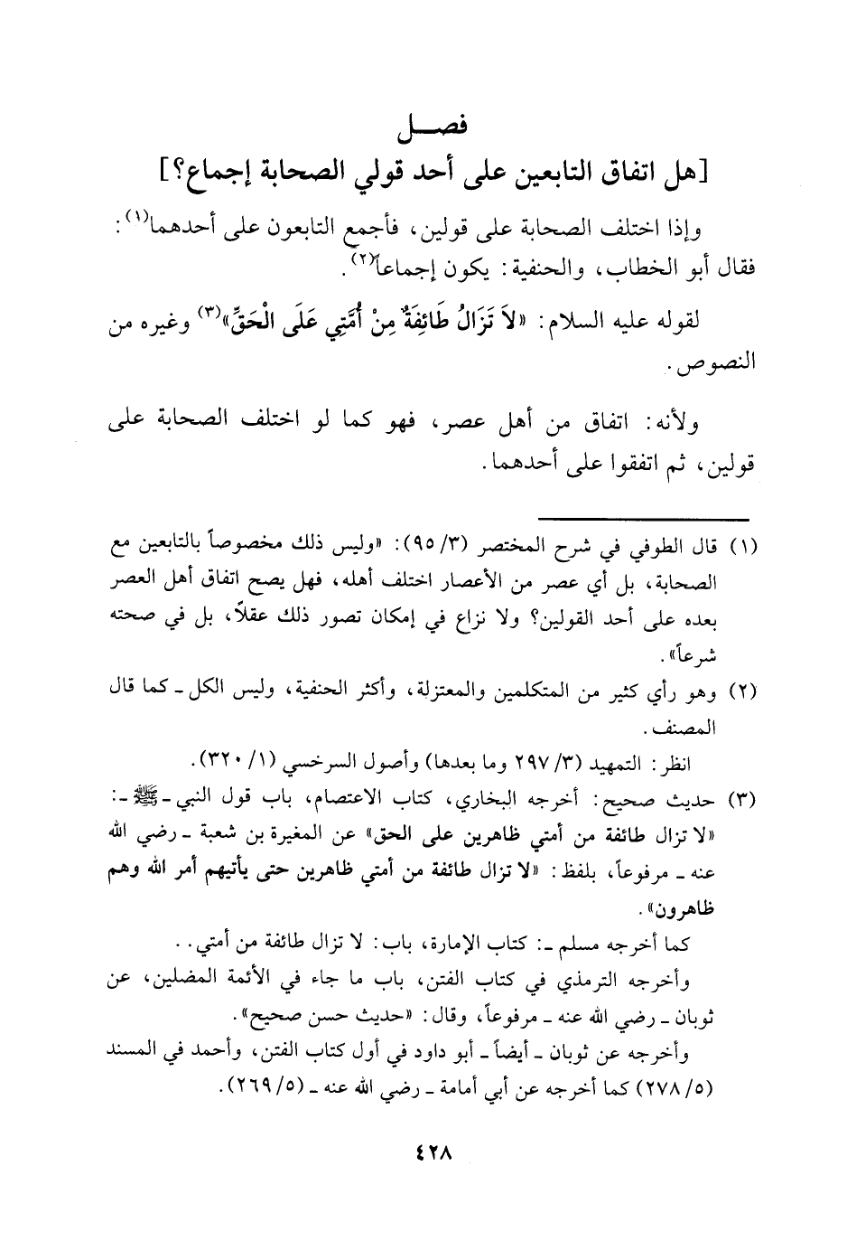 لقوله عليه السلام: "لا تزال طائفة من أمتي على الحق" 3 وغيره من النصوص.