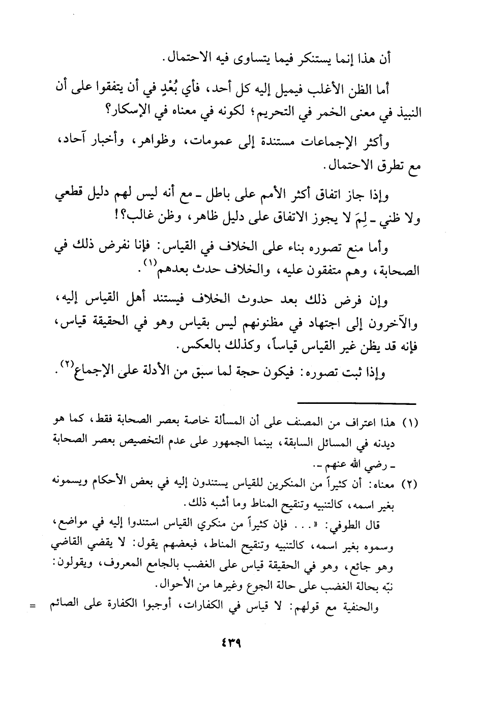 1 هذا اعتراف من المصنف على أن المسألة خاصة بعصر الصحابة فقط، كما هو ديدنه في المسائل السابقة، بينما الجمهور على عدم التخصيص بعصر الصحابة -رضي الله عنهم-.