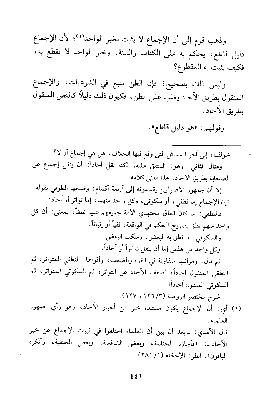 1 أي: أن الإجماع يكون مستنده خبر من أخبار الآحاد، وهو رأي جمهور العلماء.