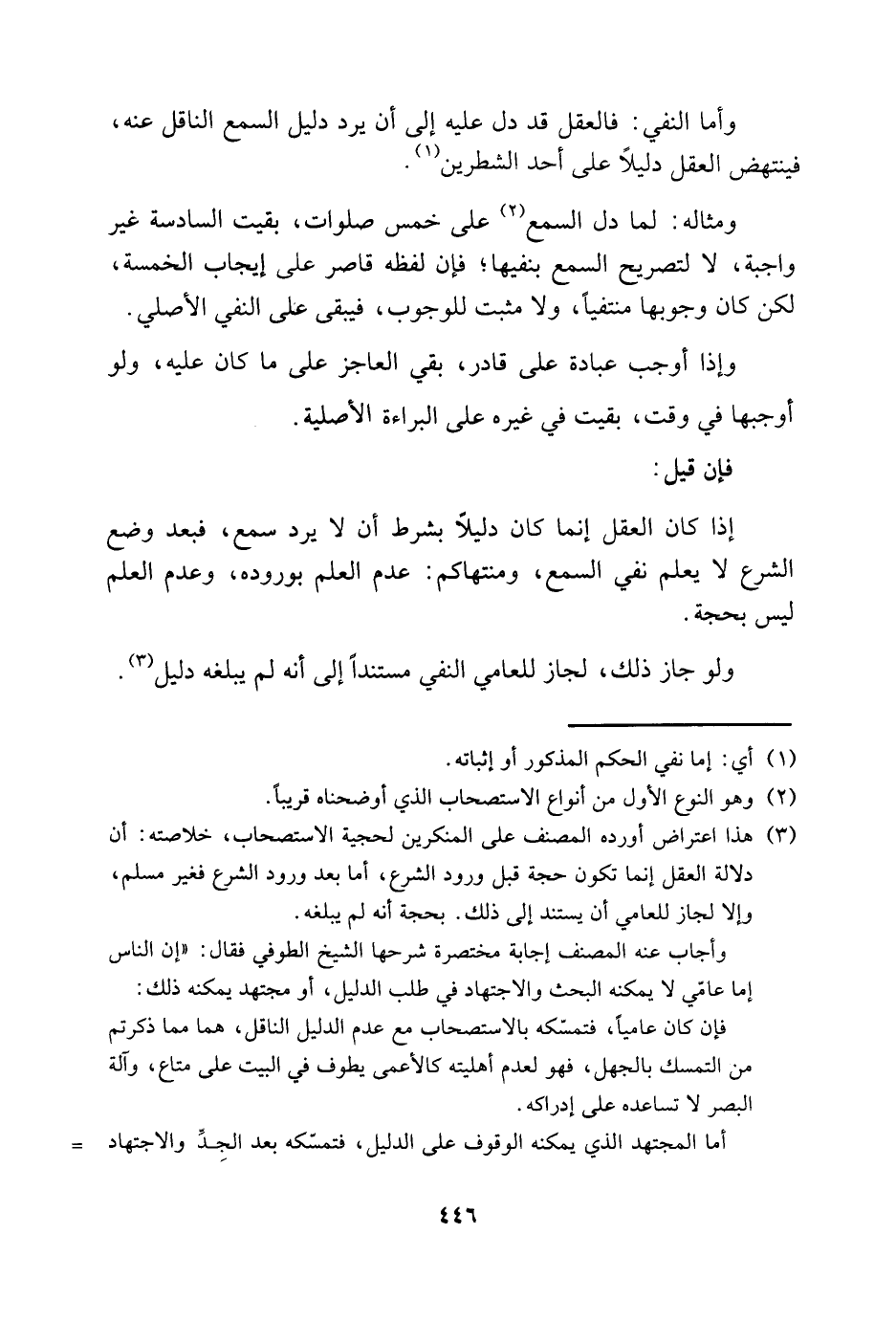 3 هذا اعتراض أورده المصنف على المنكرين لحجية الاستصحاب، خلاصته: أن دلالة العقل إنما تكون حجة قبل ورود الشرع، أما بعد وروده الشرع فغير مسلم، وإلا لجاز للعامي أن يستند إلى ذلك. بحجة أنه لم يبلغه.