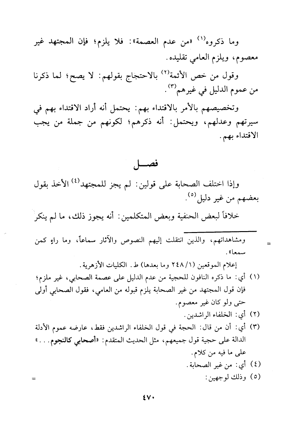 1 أي: ما ذكره النافون للحجية من عدم الدليل على عصمة الصحابي، غير ملزم؛ فإن قول المجتهد من غير الصحابة يلزم قبوله من العامي، فقول الصحابي أولى حتى ولو كان غير معصوم.