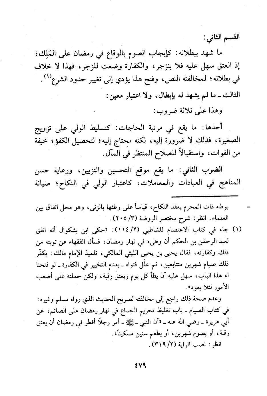 ما شهد ببطلانه: كإيجاب الصوم بالوقاع في رمضان على الملك؛ إذ العتق سهل عليه فلا ينزجر، والكفارة وضعت للزجر، فهذا لا خلاف في بطلانه؛ لمخالفته النص، وفتح هذا يؤدي إلى تغيير حدود الشرع1.