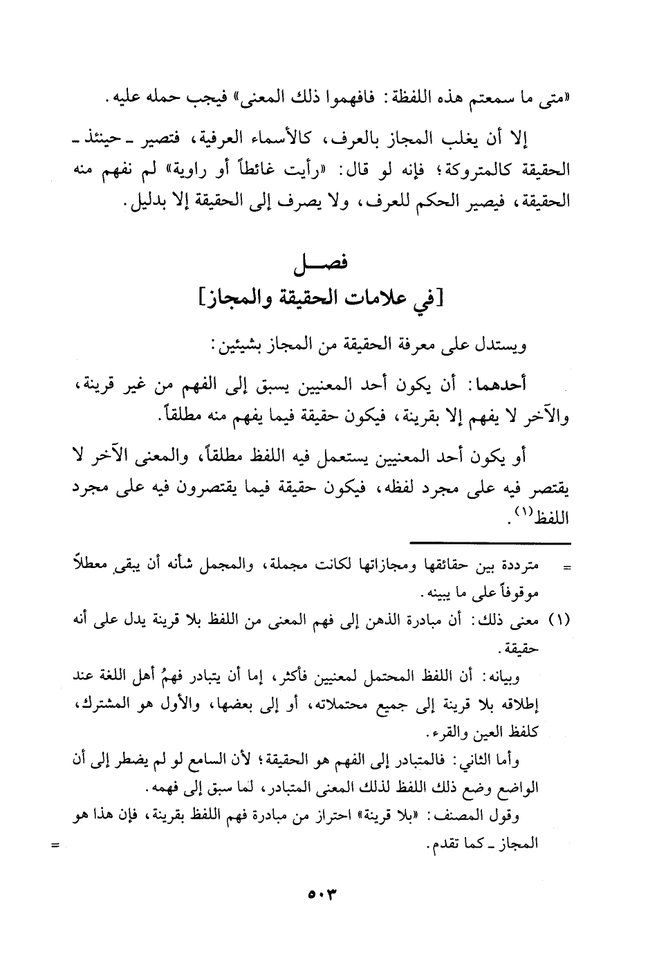 ويستدل على معرفة الحقيقة من المجاز بشيئين: