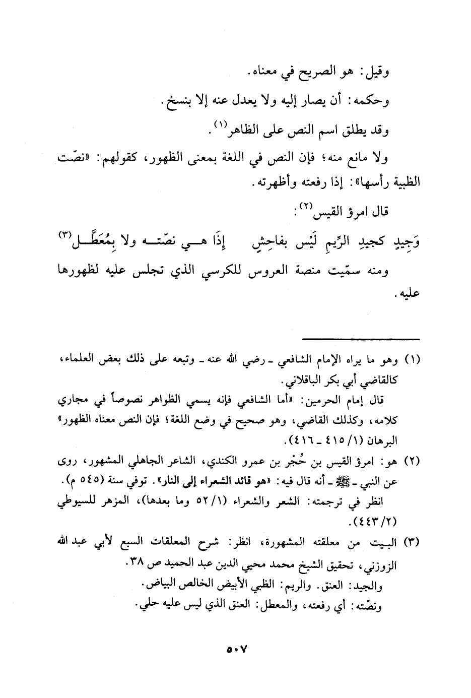 قال إمام الحرمين: "أما الشافعي فإنه يسمي الظواهر نصوصًا في مجاري كلامه، وكذلك القاضي، وهو صحيح في وضع الللغة؛ فإن النص معناه الظهور" البرهان "1/ 415-416".