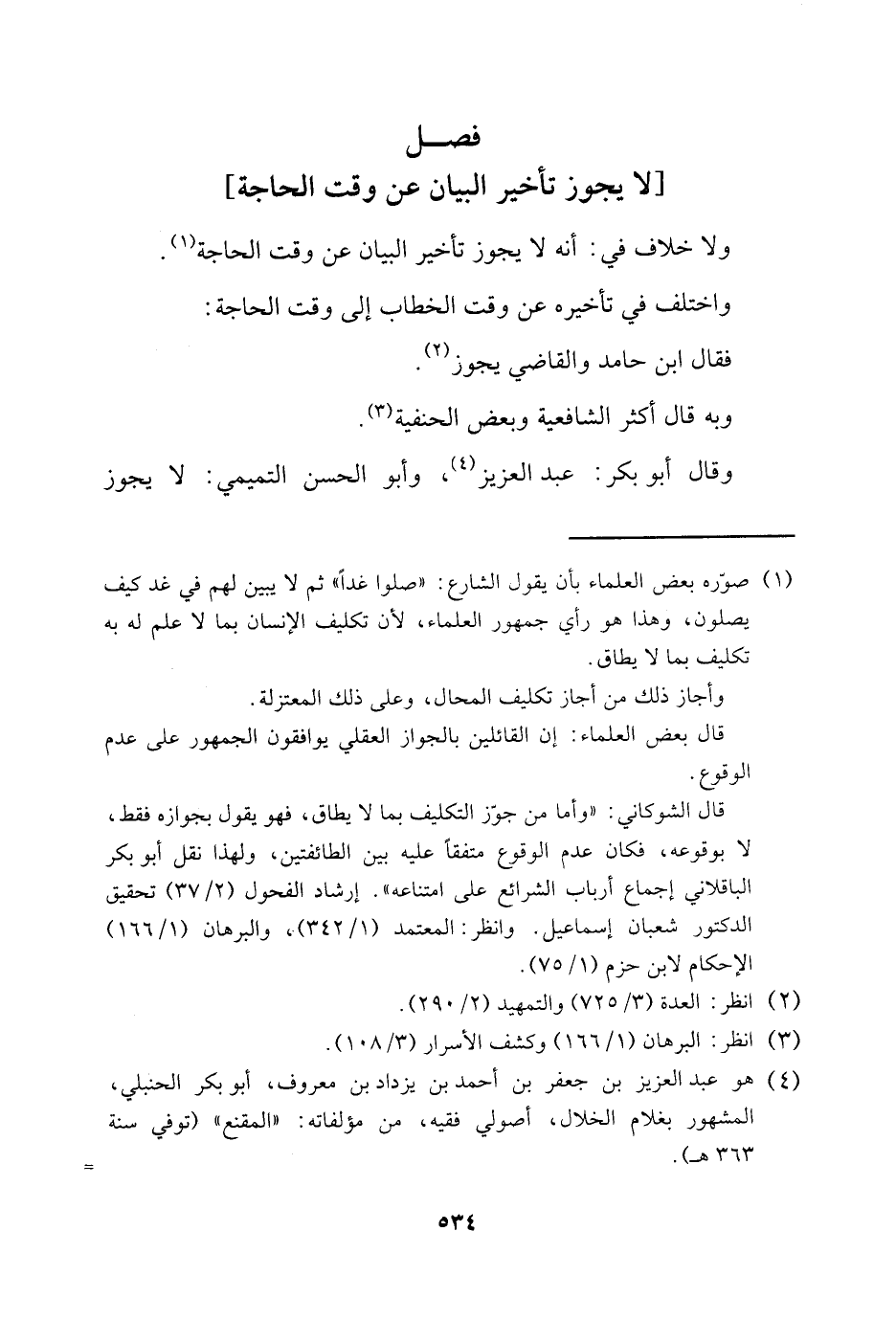 فصل: [لا يجوز تأخير البيان عن وقت الحاجة]
