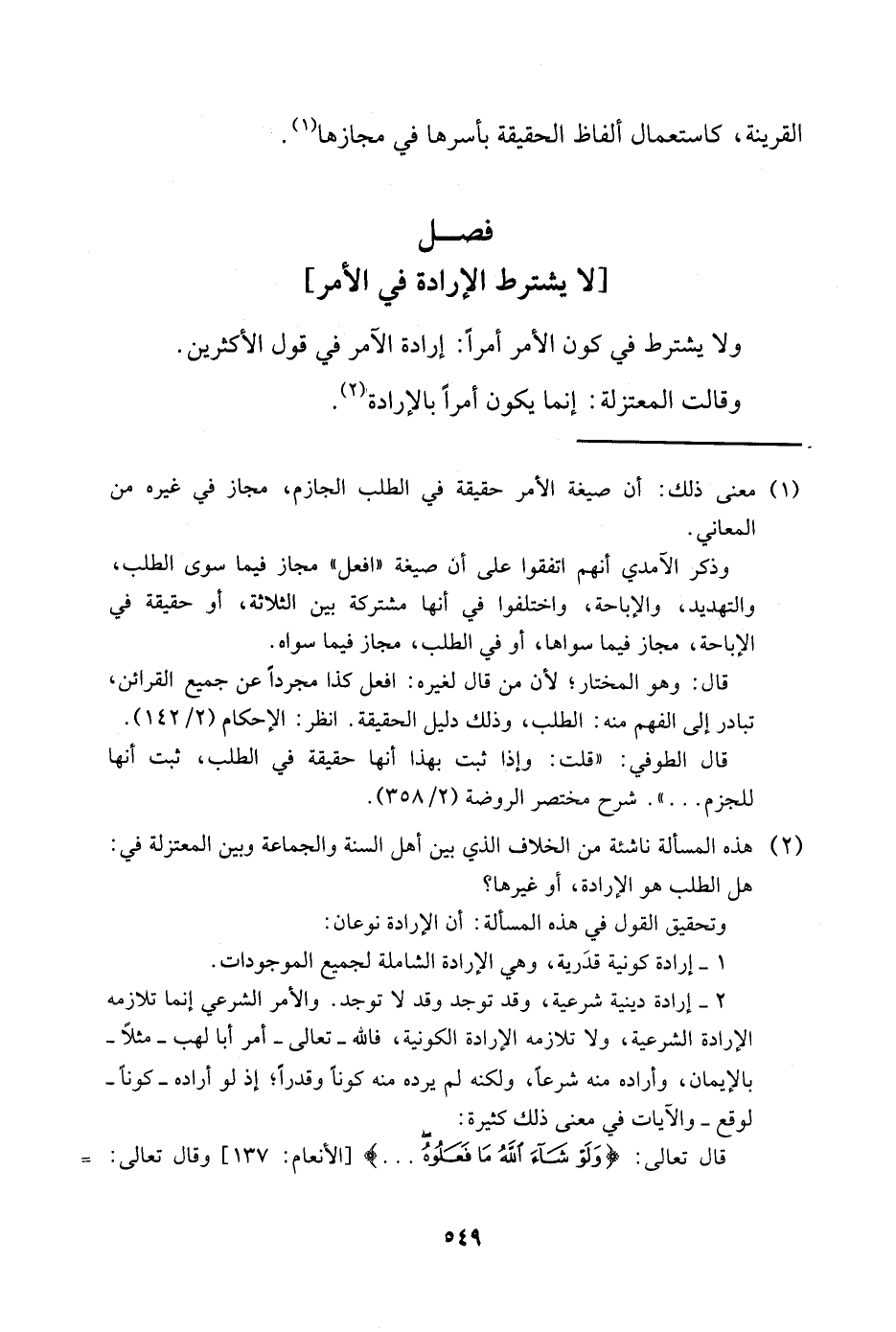 1 هذه المسألة ناشئة من الخلاف الذي بين أهل السنة والجماعة وبين المعتزلة في: هل الطلب هو الإرادة، أو غيرها؟