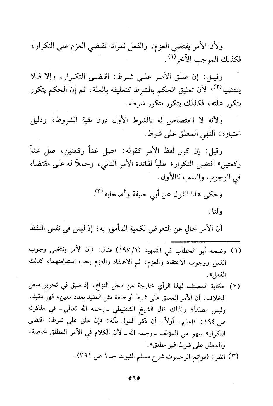 1 وضحه أبو الخطاب في التمهيد "1/ 197" فقال: "إن الأمر يقتضي وجوب الفعل، ووجوب الاعتقاد والعزم، ثم الاعتقاد والعزم يجب استدامتها، كذلك الفعل".