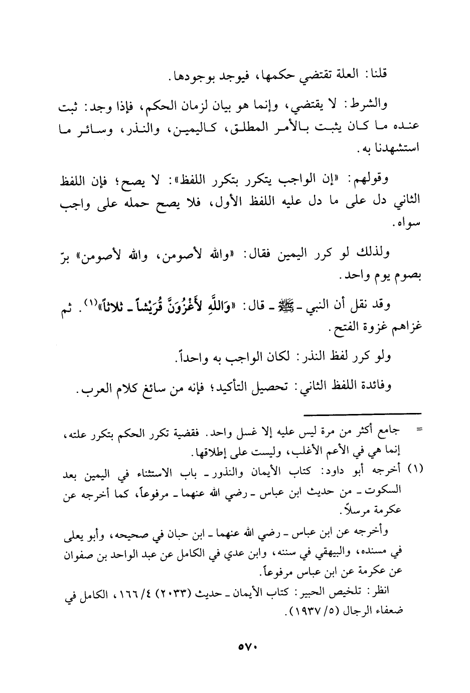 وقولهم: "إن الواجب يتكرر بتكرر اللفظ": لا يصح؛ فإن اللفظ الثاني دل على ما دل عليه اللفظ الأول، فلا يصح حمله على واجب سواه.