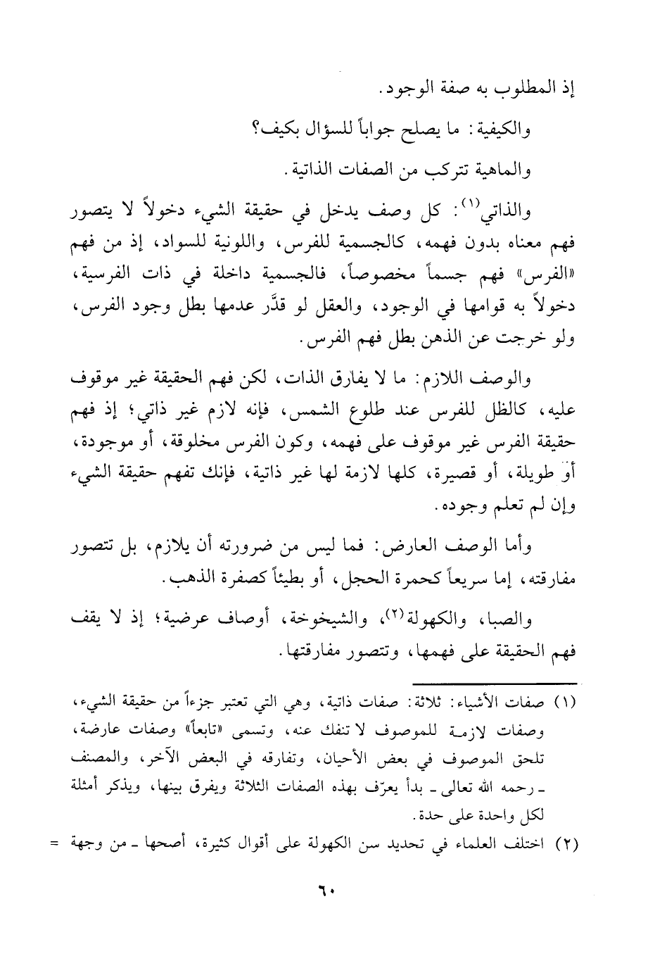 والصبا، والكهولة2 والشيخوخة، أوصاف عرضية؛ إذ لا يقف فهم الحقيقة على فهمها، وتتصور مفارقتها.