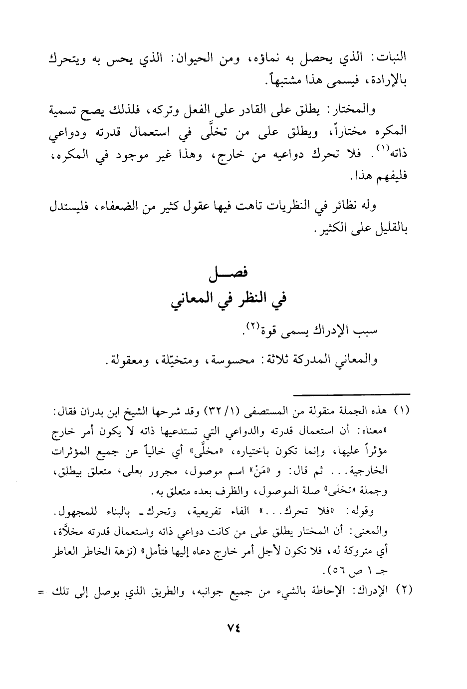 1 هذه الجملة منقولة من المستصفى "1/ 32" وقد شرحها الشيخ ابن بدران فقال: "معناه: أن استعمال قدرته والداوعي التي تستدعيها ذاته لا يكون أمر خارج مؤثرًا عليها، وإنما تكون باختياره، "مخلَّى" أي خاليًا عن جميع المؤثرات الخارجية ... ثم قال: و"مَنْ" اسم موصول، مجرور بعلى, متعلق بيطلق، وجملة "تخلى" صلة الموصول، والظرف بعده متعلق به.