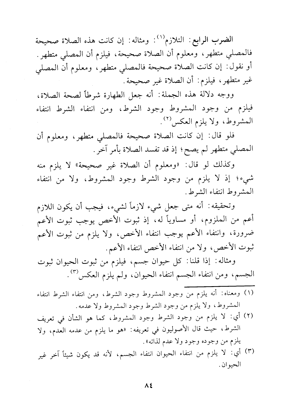 الضرب الرابع: التلازم1: ومثاله: إن كانت هذه الصلاة صحيحة فالمصلي متطهر، ومعلوم أن الصلاة صحيحة، فيلزم أن المصلي متطهر.