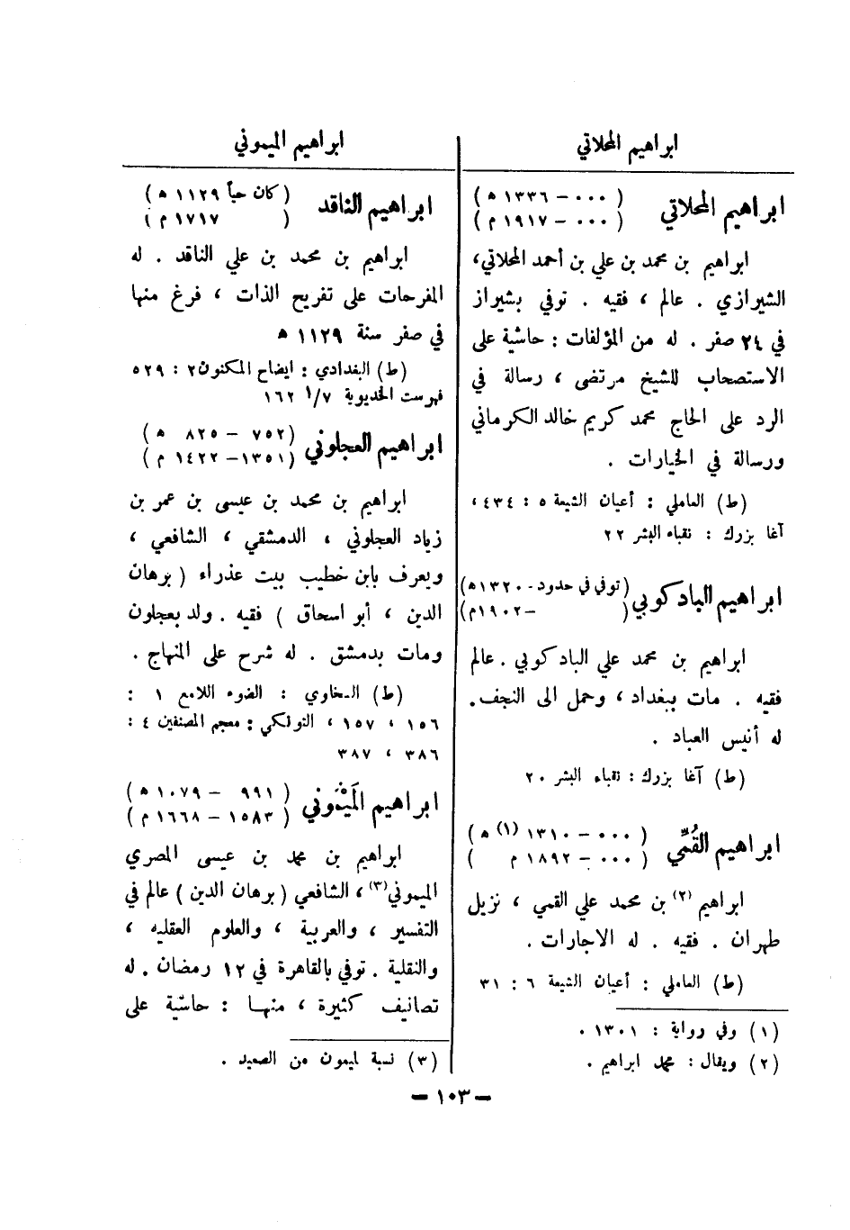(ط) العاملي: أعيان الشيعة 5: 434، آغا بزرك: نقباء البشر 22 ابراهيم البادكوبي (توفي في حدود - 1320 هـ) (1902 م) ابراهيم بن محمد علي البادكوبي عالم فقيه.