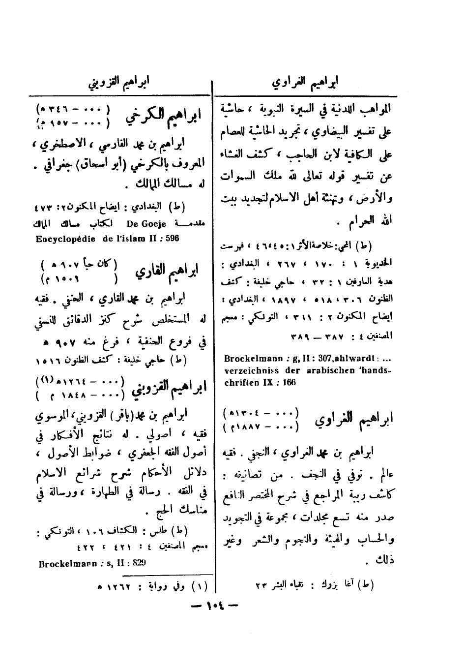 (ط) البغدادي: ايضاح المكنون 2: 473 مقدمة De Goeje لكتاب مسالك الممالك 596: Encyclopeedie de I , islam II ابراهيم القاري (كان حيا " 907 هـ)